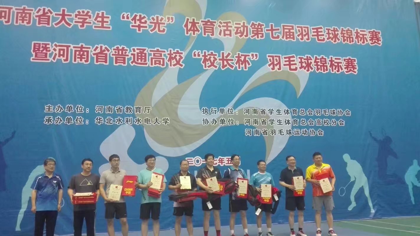 5月20日—5月27日,河南省大学生“华光”体育活动第七届羽毛球锦标赛暨河南省普通高校“校长杯”羽毛球锦标赛,在华北水利水电大学举行。我校副校长杨留栓参加了“校长杯”羽毛球锦标赛,并荣获双打第三名,我校学生梁江丽、叶君滢组成的女团荣获团体季军,实现了该项赛事的历史性突破。